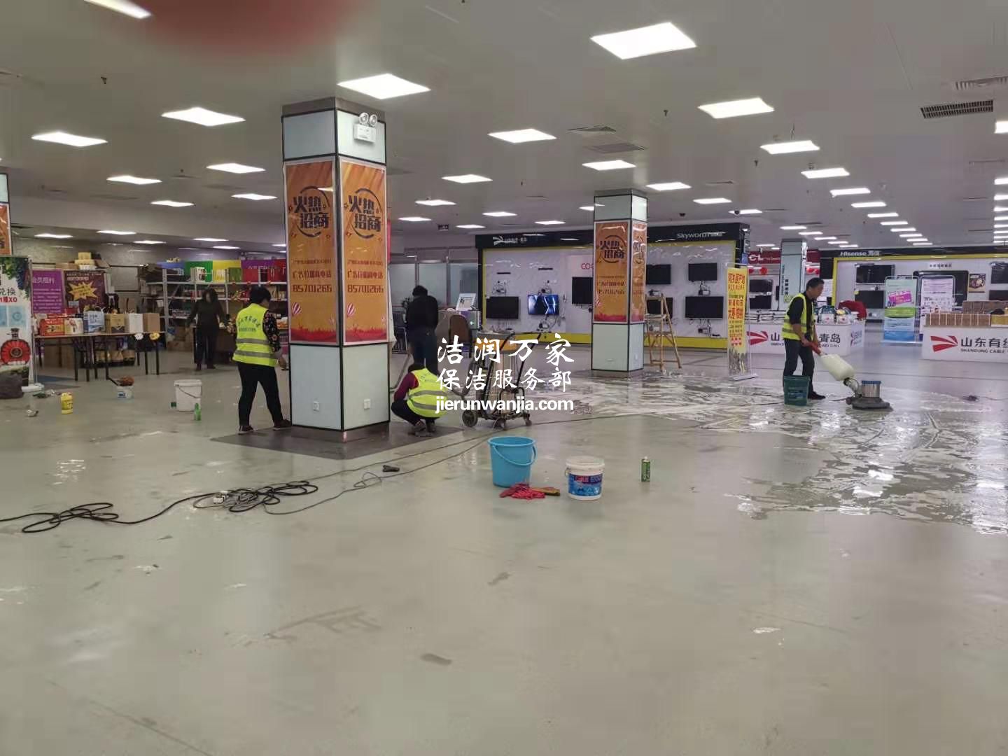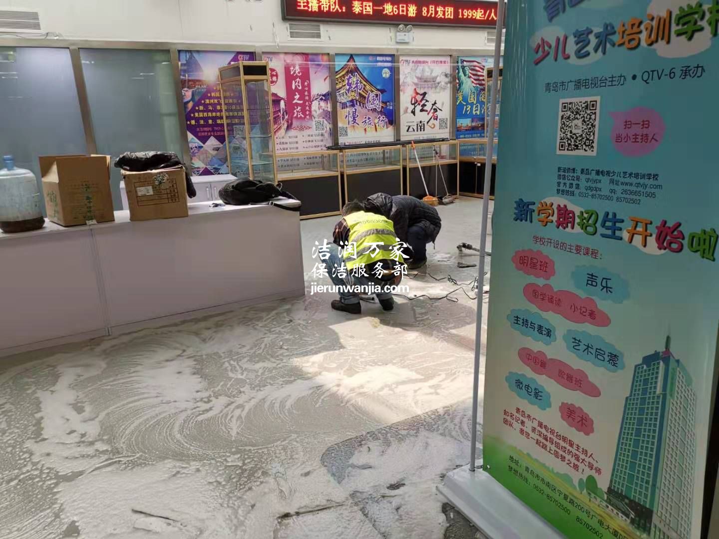 青岛保洁,青岛保洁公司洁润万家保洁对青岛宁夏路200号广电大厦营业厅进行了去***整体清洁,PVC橡胶地面清洁墙面