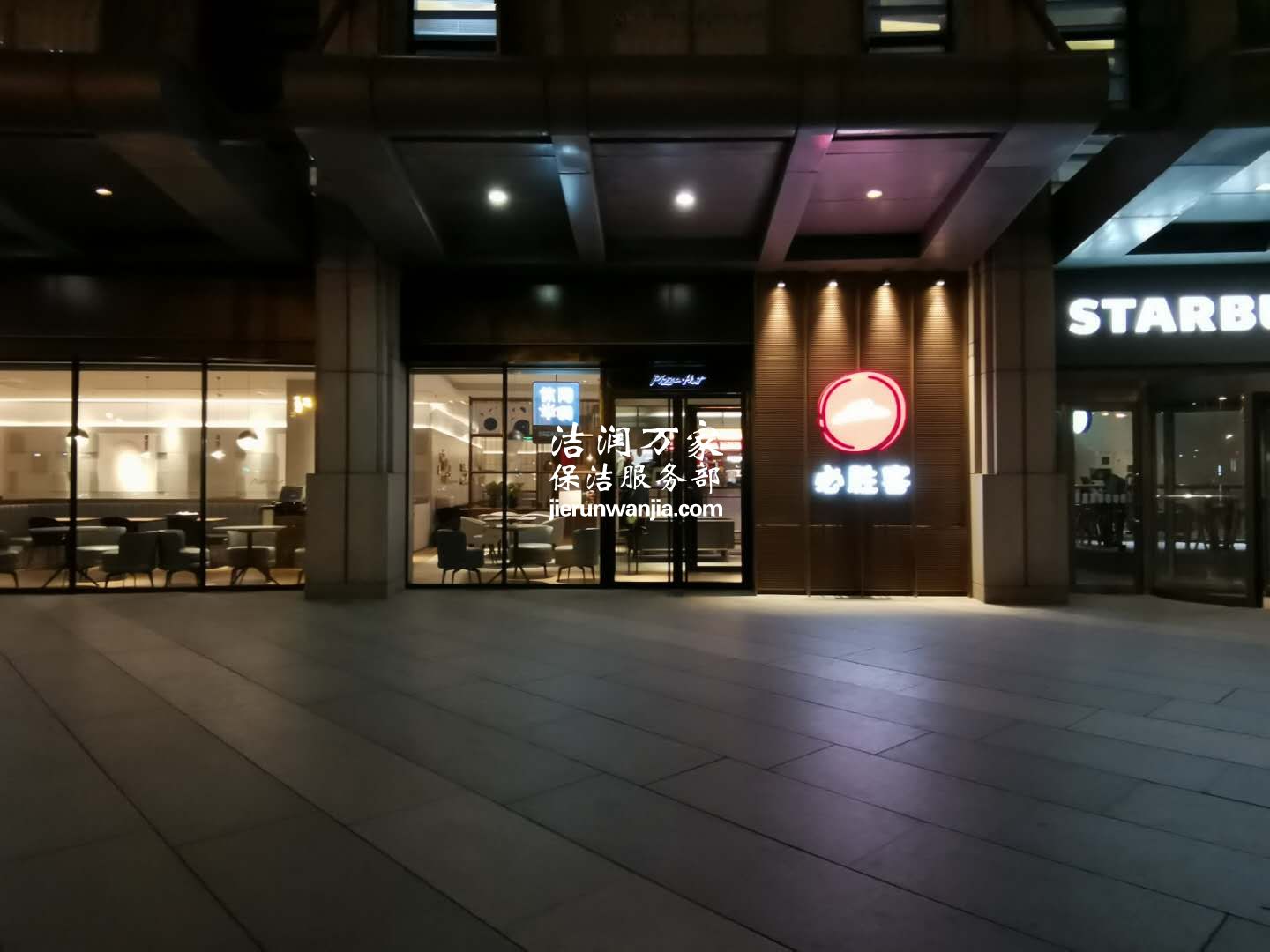 青岛保洁,青岛保洁公司洁润万家对青岛必胜客颐和国际店进行了***保洁,包含地幔打磨清洗,边角清洁,玻璃清洁等等